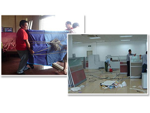 到達(dá)目的地后鋪設(shè)地板保護(hù)材料后開(kāi)始工作;電器類(lèi)按要求接通電源及其他線(xiàn)路。